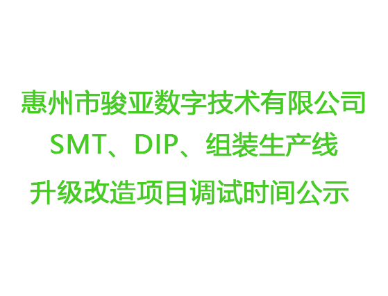 惠州市駿亞數(shù)字技術有限公司SMT、DIP、組裝生產線升級改造項目調試時間公示